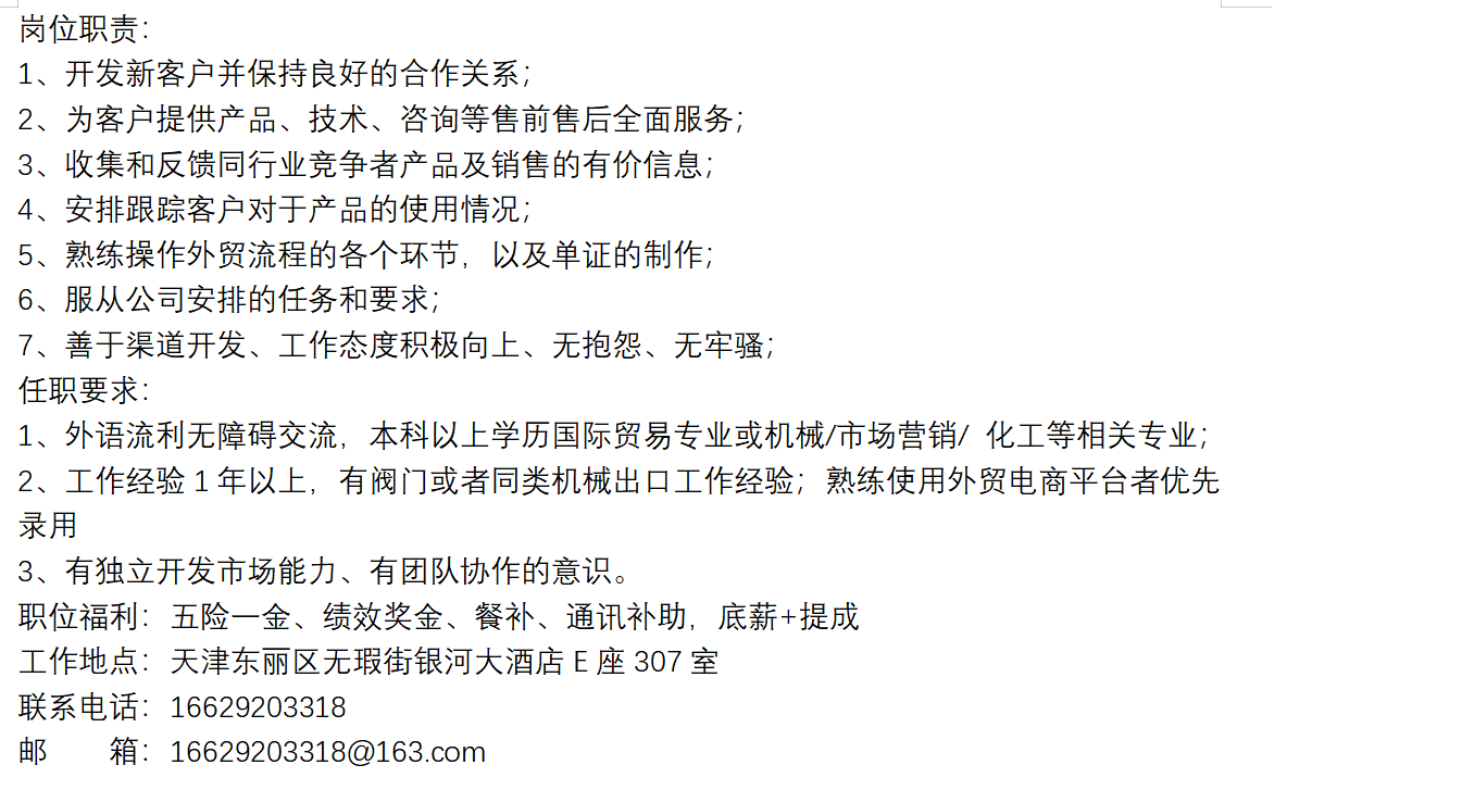 招聘信息---外貿(mào)業(yè)務(wù)員
